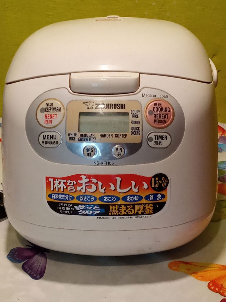 Tra parentesi: oggi, nonostante la veneranda età di 13 anni, il mio cuociriso ZOJIRUSHI (una tra le migliori marche di suihanki in Giappone) è ancora in forma smagliante e continua a regalarmi deliziosi pranzi e cene a base di riso alla giapponese. GNAM! (Eccolo qui sotto)